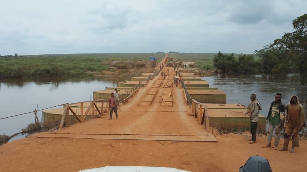 • Pont Kasai (PK 230) : constat de fissures à la base du pont flottant, nécessitant une réhabilitation urgente pour garantir le passage sécurisé des poids lourds.