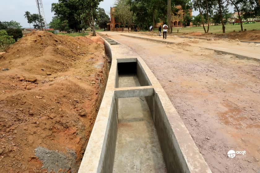 À ce jour, l’entreprise exécutante SIC poursuit la pose de la couche de base 0/31,5 stabilisée au ciment, vers le marché N’kandu.  Les travaux de la pose de la couche de roulement en béton armé et ceux de ferraillage sont également en cours d’exécution sur d’autres sections du projet. Parallèlement, sur la RN16, la construction d’un collecteur de 150 mètres de long et de 1,5 mètre de hauteur et de largeur se poursuit activement.